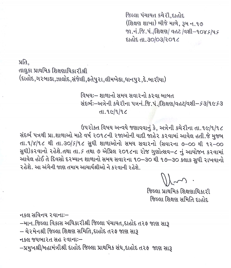 DAHOD - SHALA SAMAY BABAT PARIPATRA DATE- 30-3-2018.