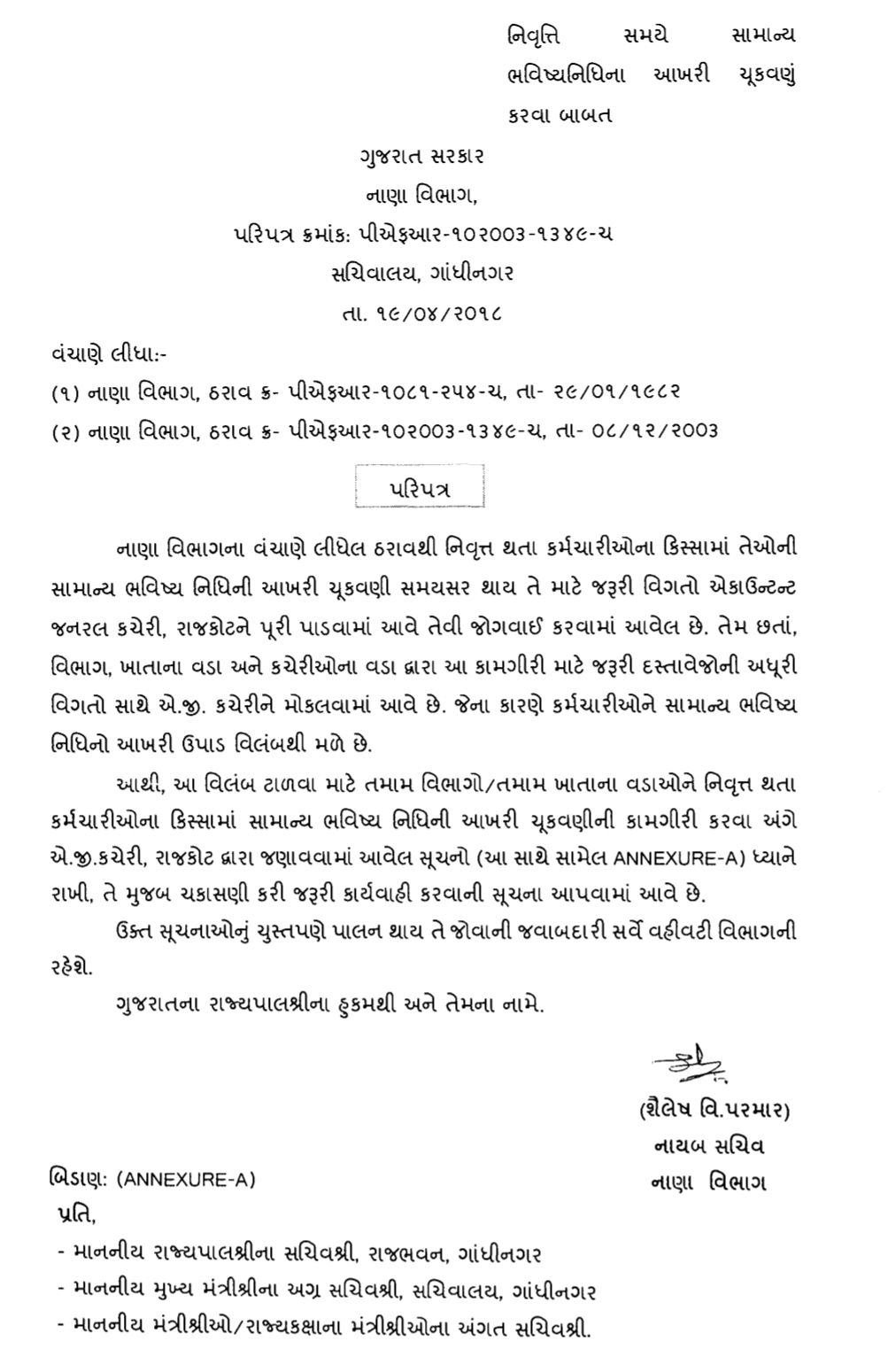 NIVRUTTI SAMAYE GPF NA AAKHARI CHIKVANA BABAT MAHTVAPURN PARIPATRA DATE - 19-4-2018.