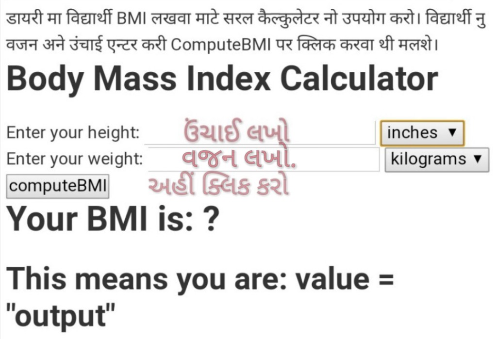 DARPAN DAIRY MA BMI LAKHAVA MATE - BALKO NI UNCHAI ANE VAJAN ENTER KARI ComputeBMI PAN CLICK KARO.