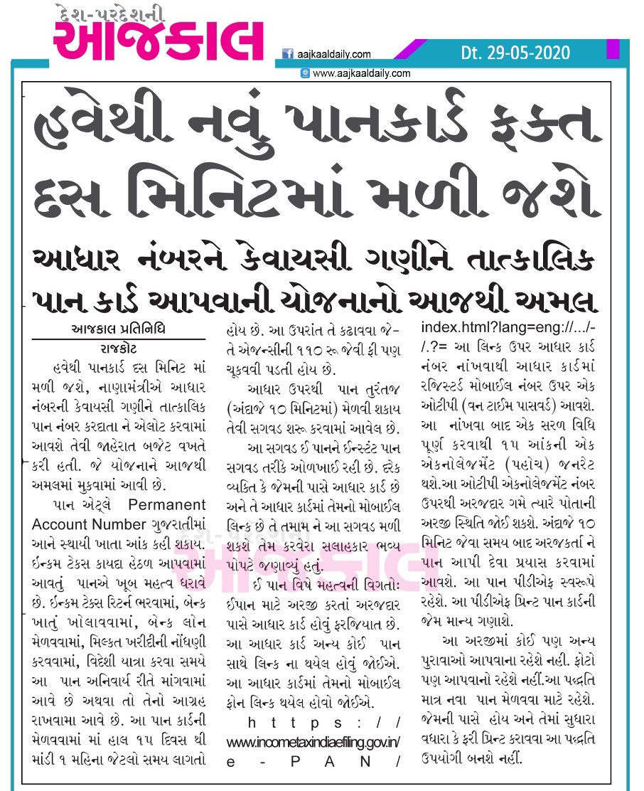 This facility is now available for those PAN applicants who possess a valid Aadhaar number and have a mobile number registered with Aadhaar. The allotment process is paperless and an electronic PAN (e-PAN) is issued to the applicants free of cost.